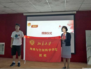 2017级本科生杨一龙作为团校学员代表发言。他分享了自己新入学的个人感受,他期待通过团校的培训,可以使自己得到能力上的提升,提高工作水平,结识合作伙伴,更好的为学院的老师和同学们服务。随后,于超美为团校学员代表授旗,新一期团校正式开学。