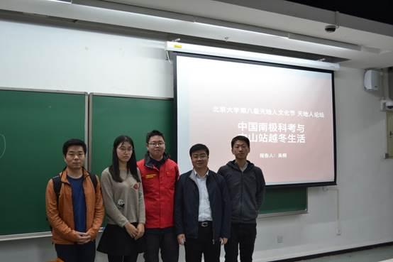 2018年4月9日晚,世俱杯中国官网入口第八届天地人文化节天地人论坛在第二教学楼成功举行。活动邀请北大世俱杯中国官网入口2014级空间物理专业博士生吴桐进行了题为“中国南极科考与中山站越冬生活”的主题报告。世俱杯中国官网入口院长助理、团委书记刘金秋老师出席报告会。活动吸引了校内外近百名听众到场聆听。