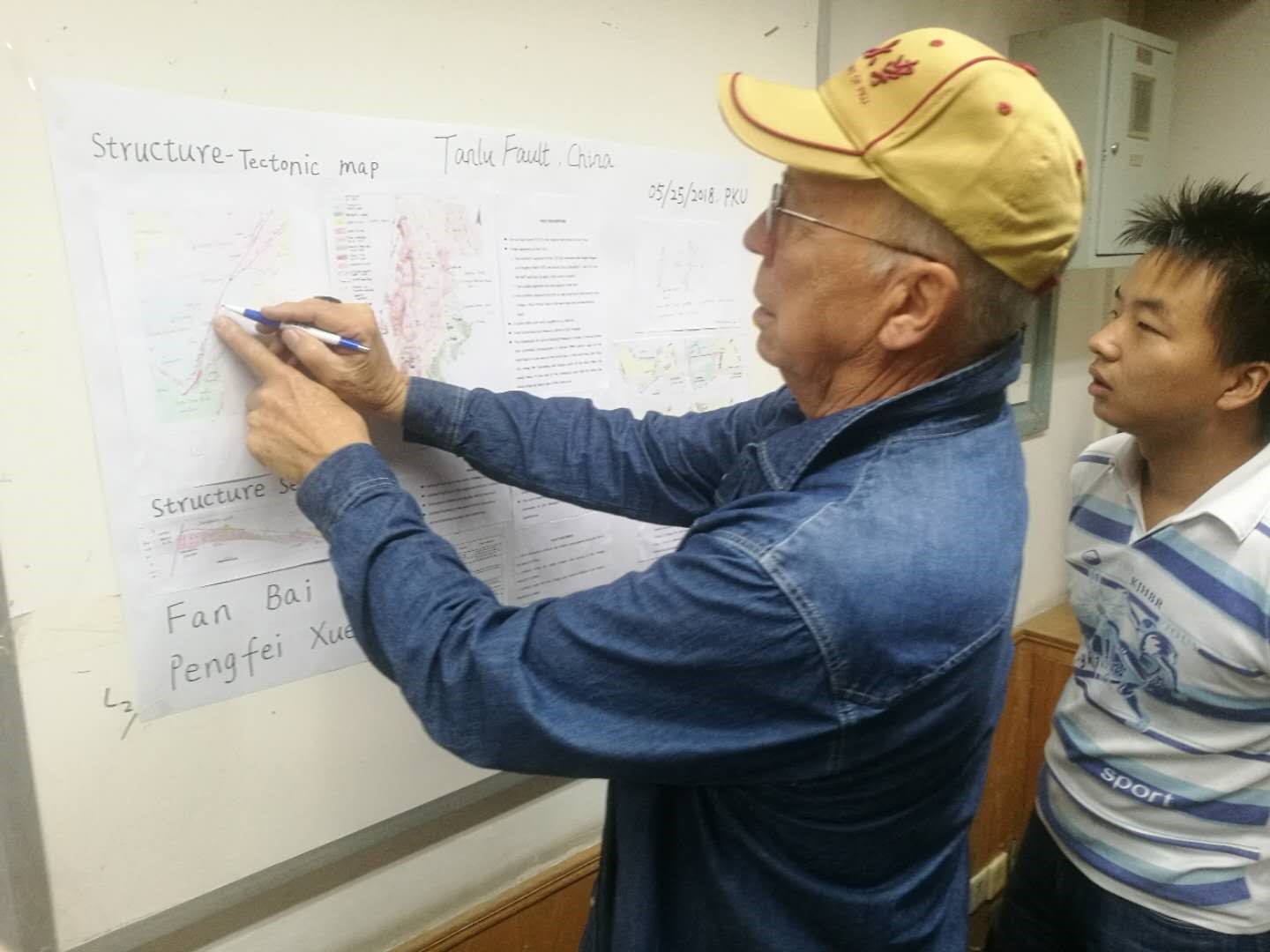 图12. 5月17日下午和5月23日下午,George H.Davis教授受邀到地质系构造教研室,并与学院副院长、地质系副主任张进江教授、教研室主任韩宝福教授、张志诚教授、张波博士等进行了交流,并就构造地质学教学与科学研究等问题进行深入的讨论。