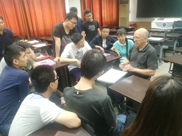 图3. George H.Davis教授与参加课程学习的同学进行学术讨论与交流(5月22日课堂上)