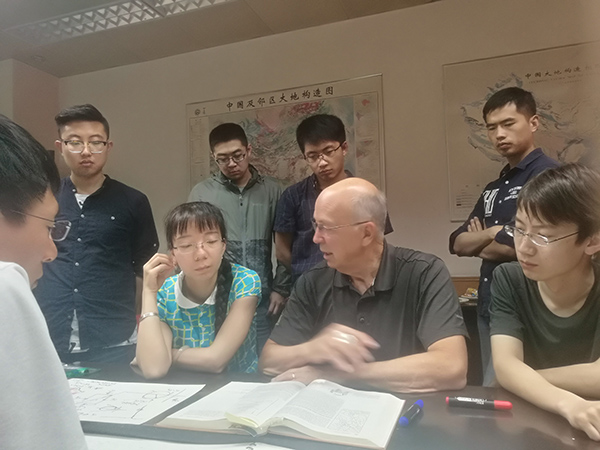 George Davis是北美出色的构造地质学家,是上世纪70年代首先提出大陆伸展变形“变质核杂岩”理论模型的地质学家之一;教授热爱地质教学和教育事业,即使在担任亚利桑那大学校长期间,他也坚持在亚大地质学系开设和讲授《构造地质学》课程,他编写的《Structural Geology of Rocks and Regions》是北美最受欢迎的本科和研究生地质学教材,在全球已印刷出版第三版。在北大世俱杯中国官网入口访问期间,他讲授《国际地质学进展》课程8次(16学 时),从理论知识讲解,到物理实验模拟与分析,以及课后学术海报讨论等多种教学环节讲授构造地质学思维和科学分析能力。他授课方法独特,启发性强,幽默, 并能根据不同知识层次同学的需求进行互动式授课与主动式讲授的结合,上课气氛非常活跃,研究生和博士生参与讨论的积极性非常高,效果非常好。