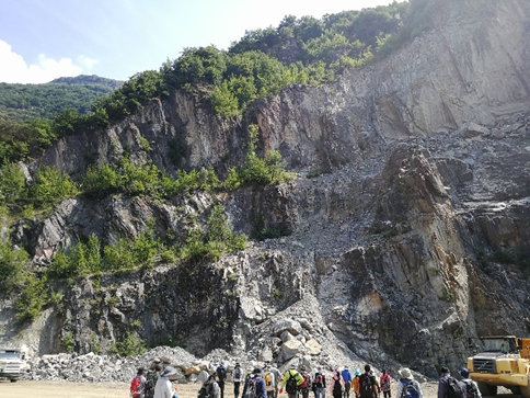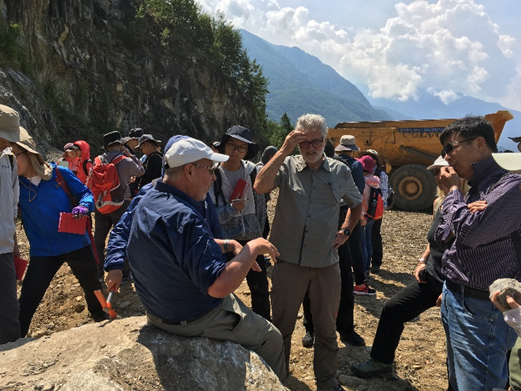 参观结束后,Peter Heitzmann与实习考察团一同前往Gotthard隧道北部出口附近,观察南阿尔卑斯区域的片麻岩露头。Peter Heitzmann对该区域的构造历史进行了讲解,并指出该地区近直立岩层的形成与阿尔卑斯造山带的两期俯冲有关。韩宝福教授、Andrea教授、江大勇教授以及吴朝东教授进行了补充说明和延伸拓展。同学们积极提问,Peter Heitzmann及各位教授一一进行了解答。之后双方共进午餐。随后道别。