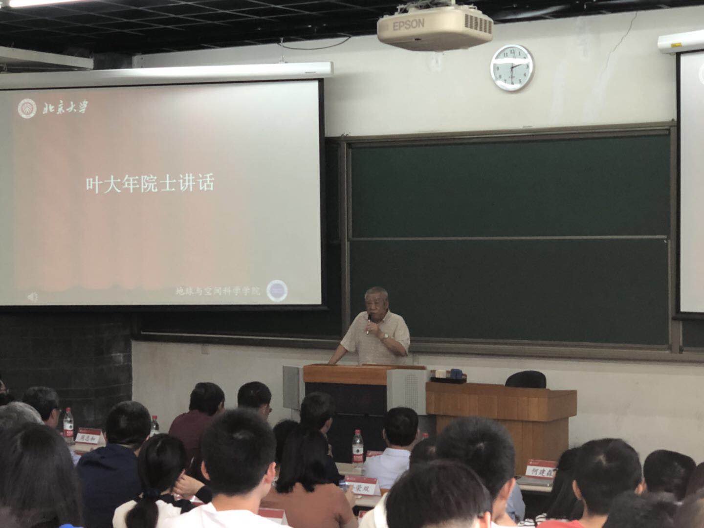叶大年院士的发言生动风趣,同时又发人深省,表达了对新生们的期待和寄托。对于青春,他说同学们要珍惜在北大的时光,一个人想要虚度年华是很容易的,但想要成为对国家有用的栋梁之材,却并不容易。对于学习,他认为同学们要力争上游,切不可因为来到北大,就丢失了这种竞争意识。对于地球科学,他结合了自己的求学经历,介绍了他对地球科学的认识:这是一个极具发展力的专业,是一个努力就能做出成果的专业,地球科学具有美好的未来和远大的目标。最后,他嘱咐同学们莫要因为自己某些方面条件不足而感到自卑、放弃努力,要努力适应新环境,找到自己的良师与益友,收获成长的喜悦。