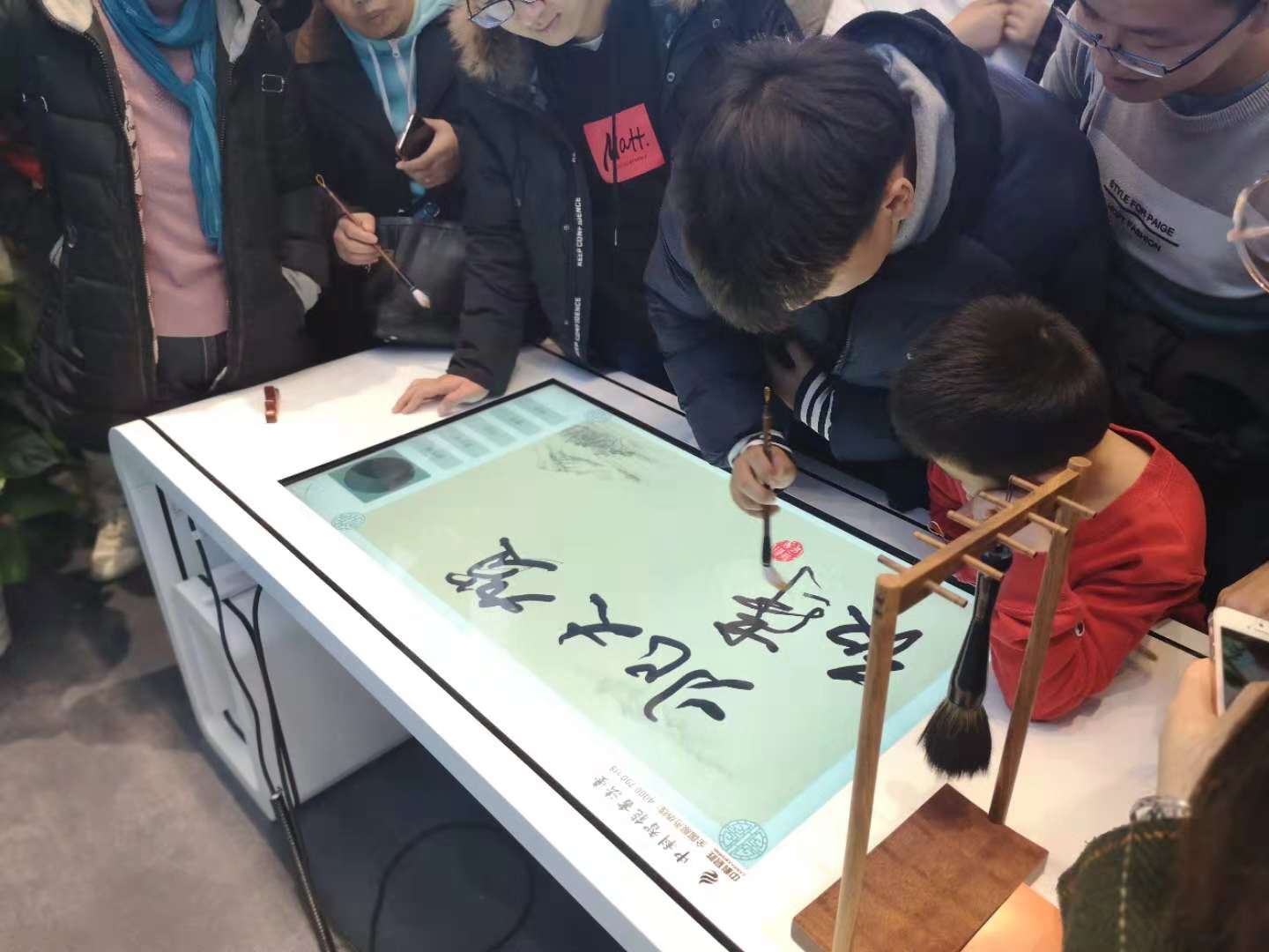 (图2:地空学子用智能书法写下了对祖国祝福)