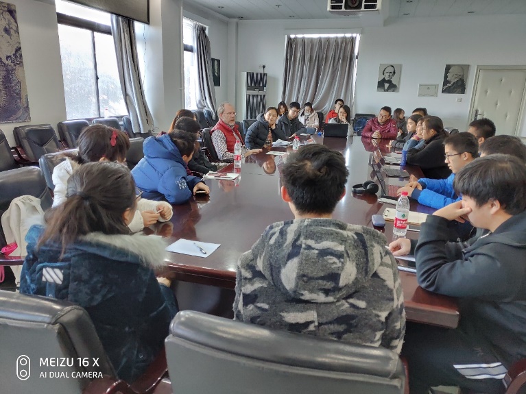 12月7日下午,雷德芬·西蒙教授和冯晓蕾博士在逸夫贰楼3221会议室与同学们进行了“师生交流座谈会”。会议由矿物、岩石、矿床学研究所董琳副教授主持。首先,董琳老师向同学们介绍雷德芬教授和冯晓蕾博士。座谈会开始后,同学们积极地向教授提出自己的问题,教授也一一给予解答,包括新生入校面对的问题、剑桥大学对留学生的选拔等等。此外,教授也与大家分享了自己的学术方向从工程学到地球科学的心路历程,鼓励大家在追求科学的道路上持之以恒,永不放弃。同学们也在交流会中了解到了剑桥大学的本科生教学体系、地球科学的课程安排和野外实习的课程内容等等,增进了自身对国际化教学的了解。