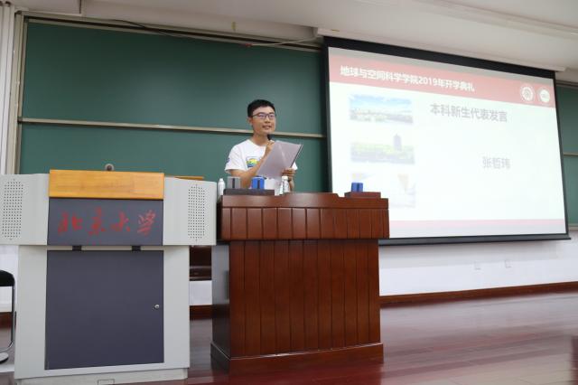 首先,张立飞院长代表学院以及全体师生员工对新生们的到来表示祝贺和欢迎。他介绍了2019级新生人数和比例概况,回顾了地球与空间科学的发展历史和北大地空学科的发展历程,并指出地球与空间科学在推动现代科学构建和发展中起到重要推动作用,而北大世俱杯中国官网入口在学科建设、人才培养和科学研究等方面都取得了令人瞩目的成就,已成为世界地球与空间科学人才培养的重要基地。同时,张立飞院长对同学们提出三点希望:第一,保持一颗“平常心”,老老实实做人,踏踏实实做事,守住做人做事做学问的底线,为将来真正踏入社会做好充分准备。第二,深入领会北大的精神实质和内涵,努力成为一名真正的北大人。习近平总书记期望北大青年做到“爱国、励志、求真、力行”,而北大百年以来所延续的“爱国、进步、民主、科学”精神传统,也一直激励着北大人,把爱国作为立身之本。第三,努力成为一名“脚踏实地,仰望星空”的真正北大地空人,在踏实做人做事做学问的同时,始终保持理性的科学精神和志存高远的人生追求,努力拼搏赢得社会尊重和实现自我价值。张立飞院长用余逸伦同学、徐星教授、卢海龙教授、张弥曼院士和法文哲研究员的优秀事迹来鼓励同学们自强不息,在人生的新起点上勤奋进取。他强调,世界对地球与空间科学的热情正在加速升温,未来人类社会的国际竞争,将首先是地球与空间科学的竞争,是地球与空间科学人才的竞争。而同学们生逢其时,重任在肩,要为实现中华民族伟大复兴的中国梦贡献自己的力量。