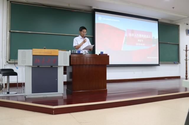 教师代表谢伦老师表示,自己很高兴担任新生班主任。和生机勃勃的同学们相遇,会给未来的生活带来不一样的色彩。作为一名老师,秉承传道授业解惑的精神,希望把自己的人生经验和感悟跟所有同学分享。谢伦老师对大家提出了五点期望:第一,学会珍惜,懂得感恩。珍惜来北大求学的机会,珍惜遇到的每一位同学和老师。感恩成长中父母付出的辛苦,感恩求学生涯中的老师和帮助过你的人。第二,负责任,有理想,敢担当。对自己、对他人、对社会、对国家负责任。天下兴亡,匹夫有责,这是北大人的使命。第三,面对压力,做一个健康快乐、积极向上的人。第四,认真完成学业,并在北大丰富的课外生活中找到自己的兴趣,积极参与,找到生活的平衡点。第五,遇到困难和问题,向同学和老师寻求帮助。