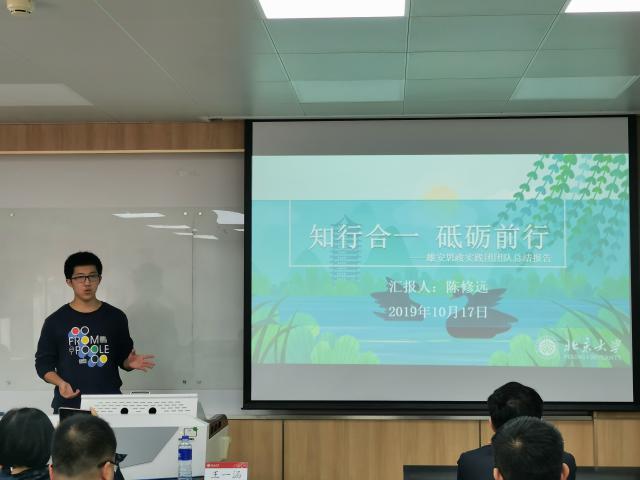 分组汇报后,陈修远同学进行了主题为“知行合一、砥砺前行”的团队总结,他将赴雄安思政实践团的行程按照其所代表的时代特征分为过往、今生、未来三个部分,重新回顾了整个思政实践,虽然很辛苦,但却是一次重走习总书记当年路、重温赤子心的有意义的经历,最后他提出,我们要将理论与实践相结合,脚踏实地,仰望星空,承担起我们这一代人的责任。