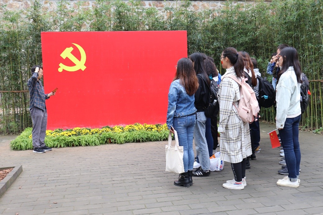 在中央警卫处旧址的党旗前,学生党们员重温入党誓词,坚定入党初心,牢记青年使命,而后高声齐唱《歌唱祖国》向祖国告白。