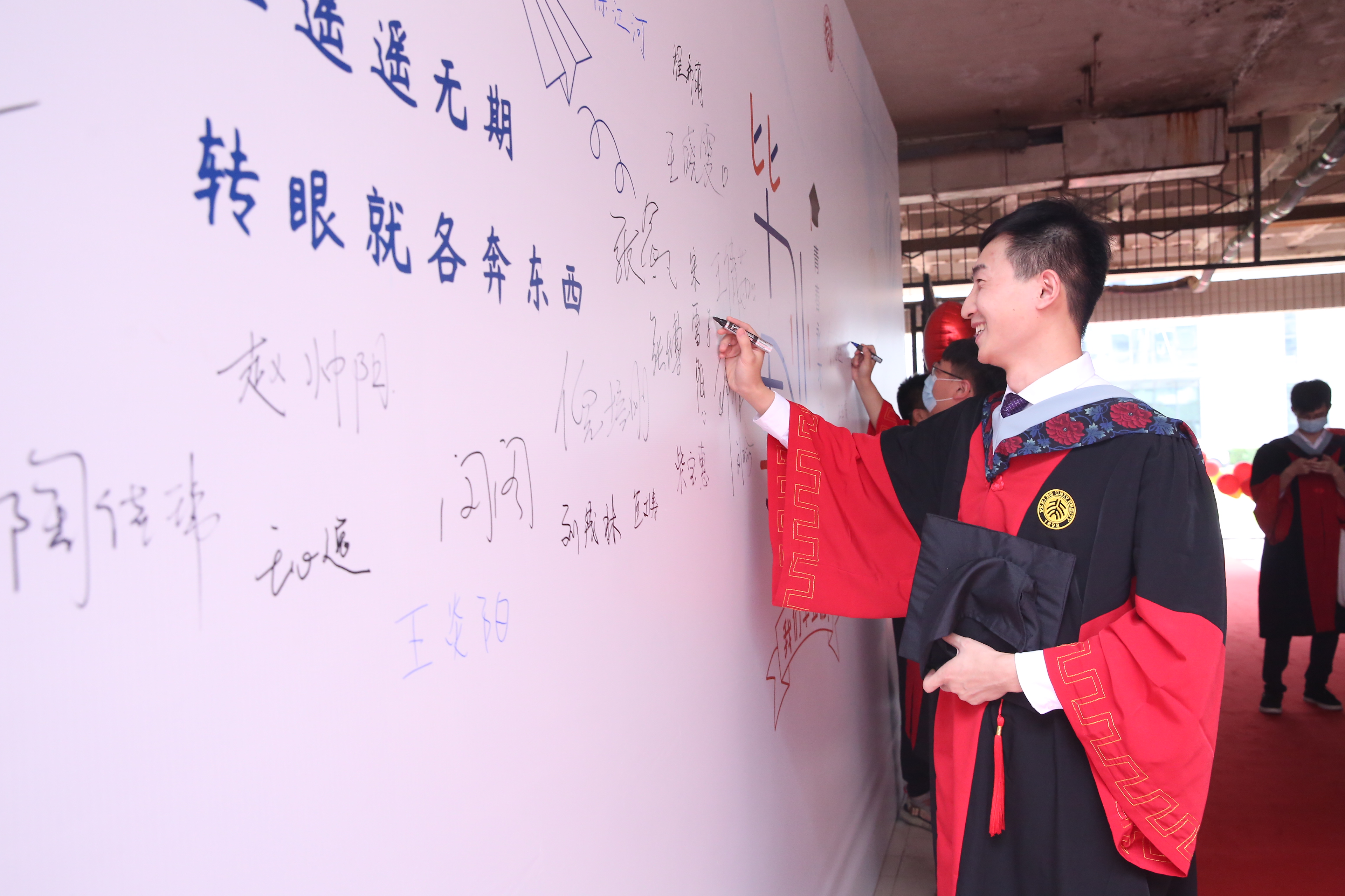 学院副院长张进江、何建森分别宣读了本科毕业生与研究生毕业生名单,在现场的同学被念到名字时都大声回答“到!”,在线上的同学则通过聊天框发出“到!”,通过这一具有仪式感的环节,同学们线上线下再次同步集结,整装待发。