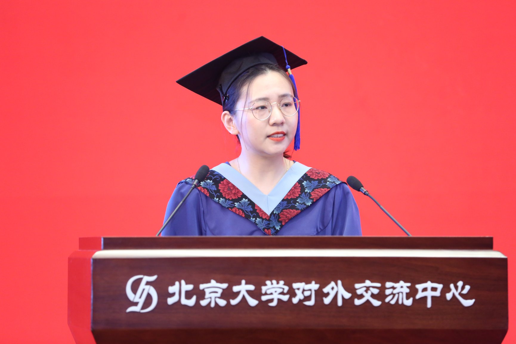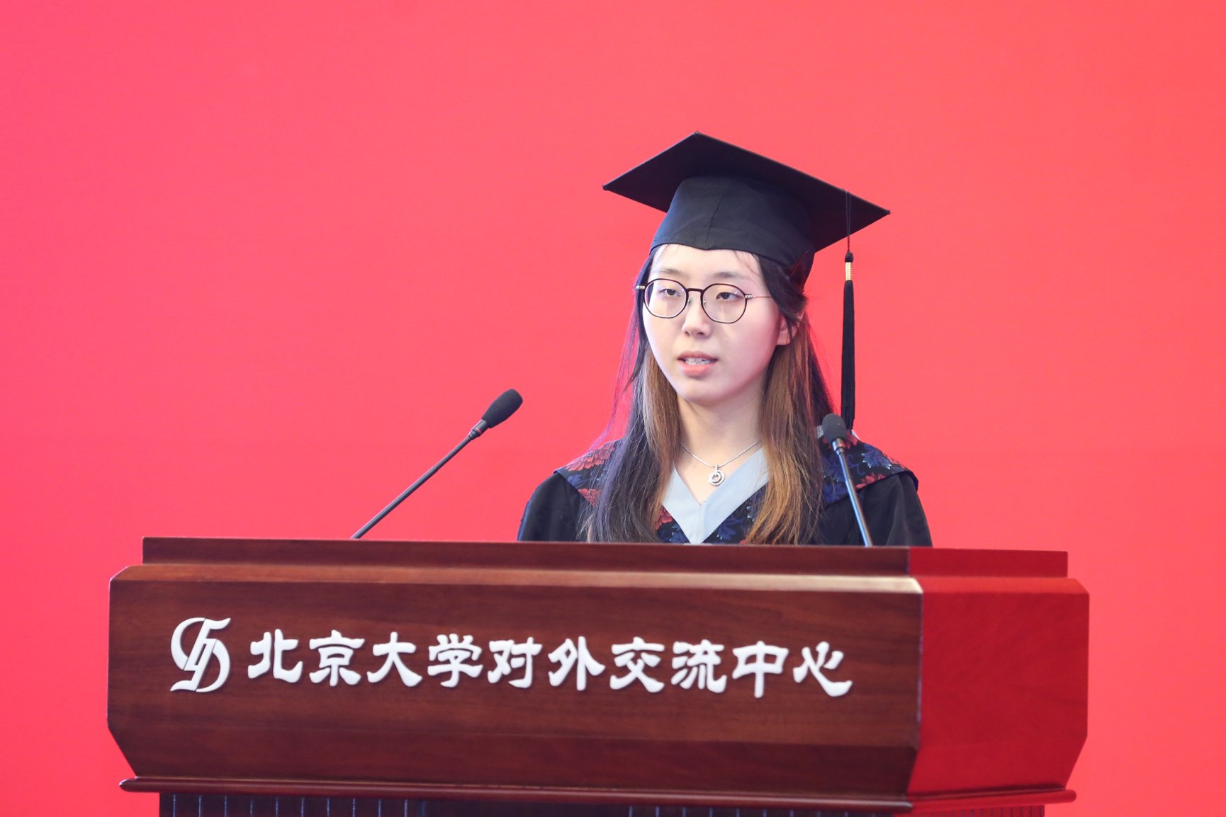本科毕业生代表方景行回顾了与同学们朝夕相处的日子。聆听老师们的教诲,享受学院和学校的关怀,是她最美好的回忆。她号召大家,在离开北大乃至走向社会的过程中,要继续用“北大人”追求完美的精神和关爱他人的美德要求自己。