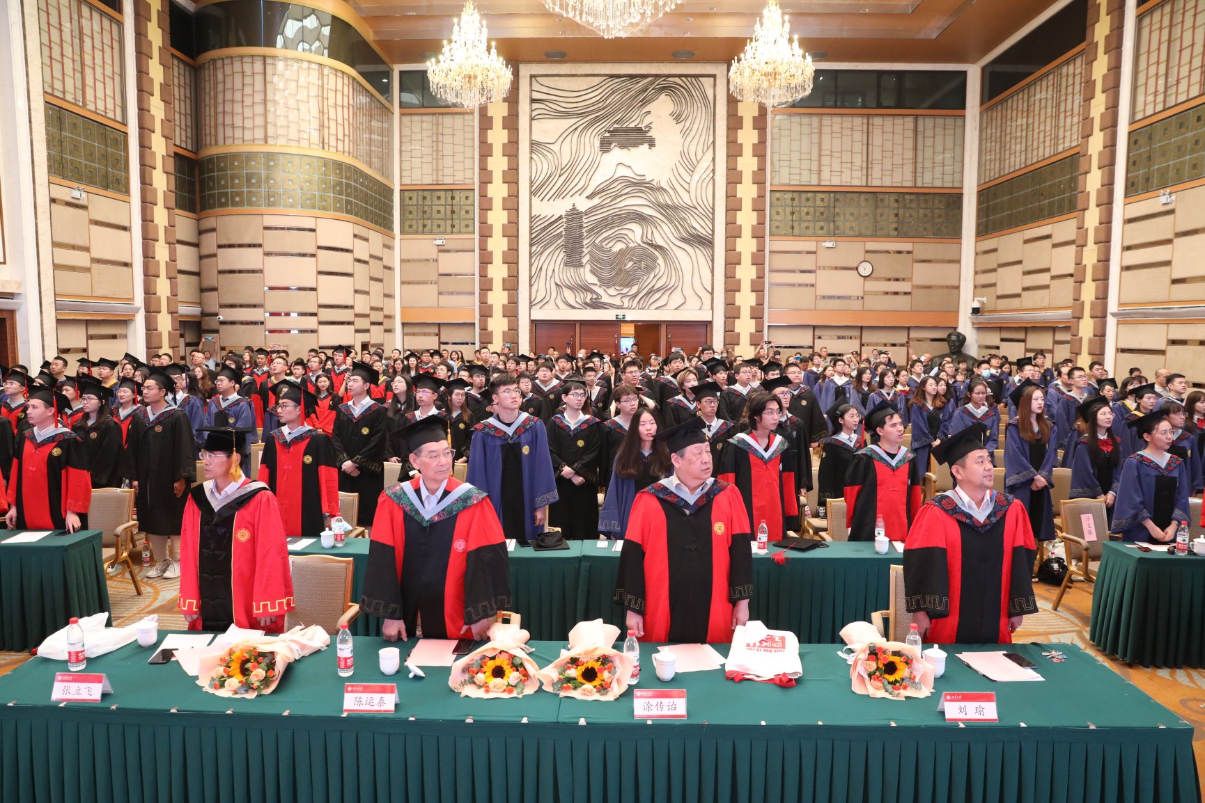 随着《燕园情》悠扬的歌声响起,毕业生们如同初入燕园时一样,再一次共同唱响北大地空人的慷慨豪迈,毕业典礼走向尾声。