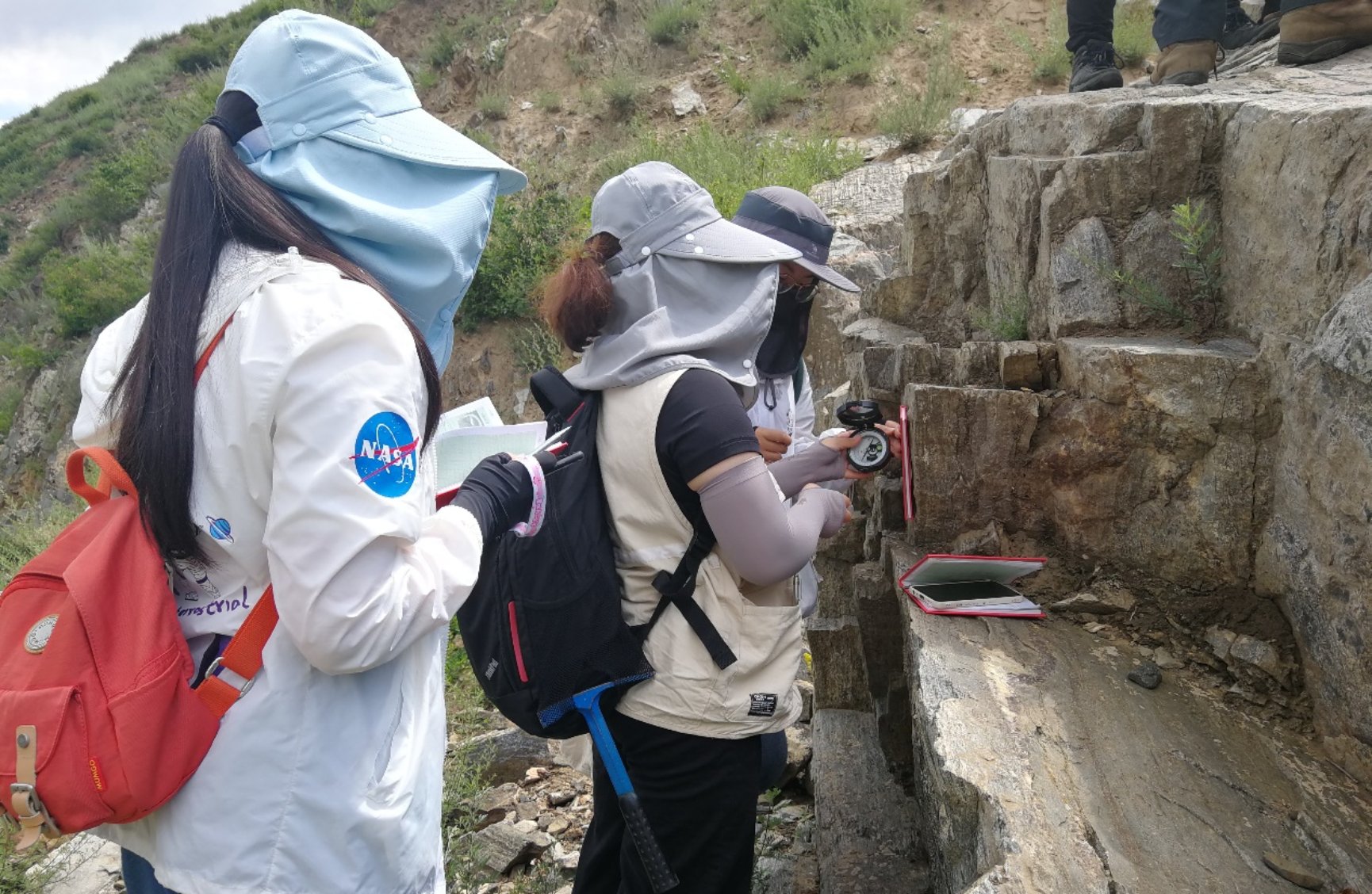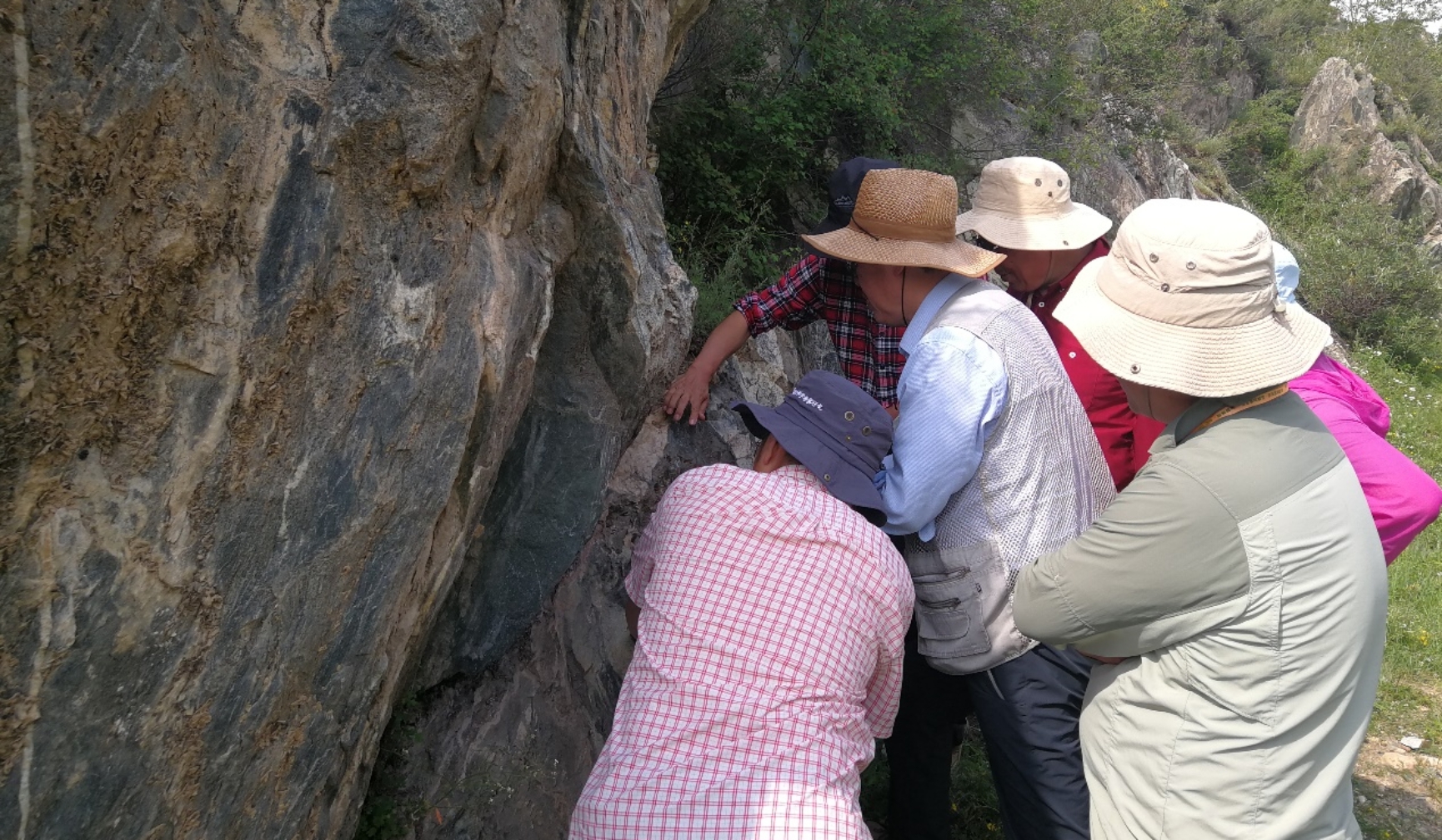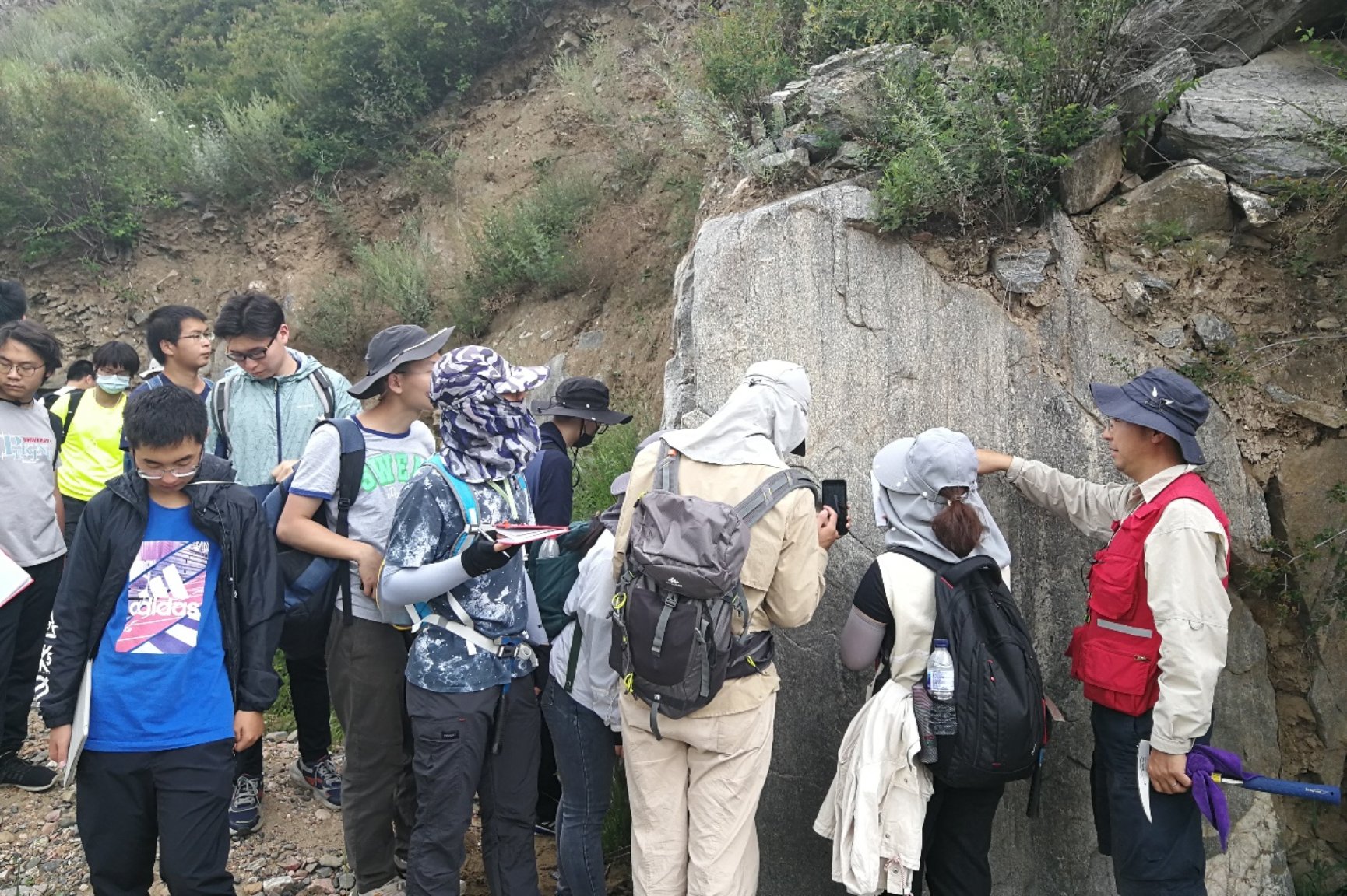 同学们认真的观测与分析野外地质露头