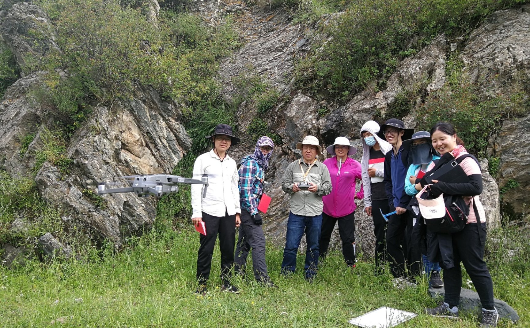 张贵宾副教授给学生演示无人机在野外勘查中的应用
