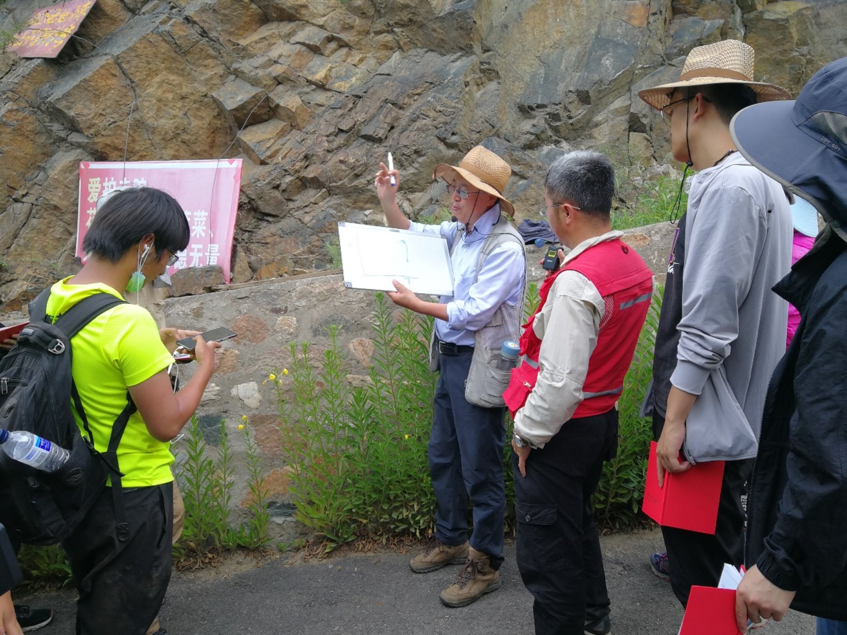 魏春景教授在安头村观测点讲解变质反应过程