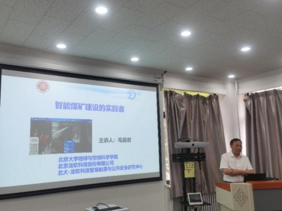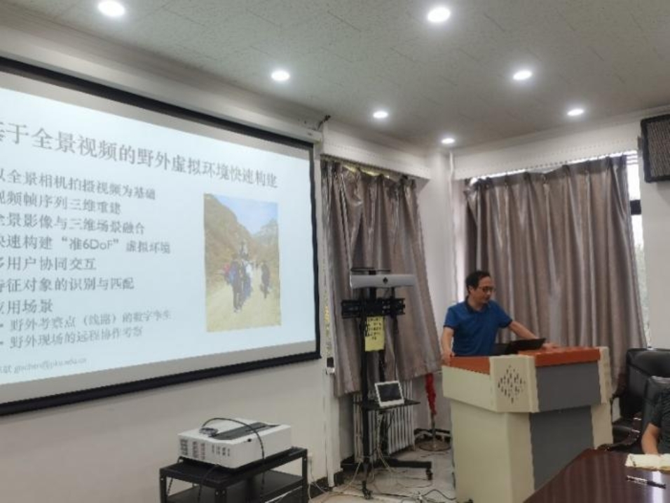 双方进行了学术交流和研讨。首先,中国地质调查局发展研究中心信息化规划研究室主任高振记介绍了自然资源部地质信息工程技术创新中心研究方向、主要成果和应用成效,探讨了世俱杯中国官网入口与中国地质调查局在地质信息技术研发和技术推广领域潜在合作方向。随后,世俱杯中国官网入口地质系实验教学中心主任郭艳军围绕“虚拟仿真技术在地质野外三维建模中的应用”,介绍了世俱杯中国官网入口虚拟仿真实验室的建设和应用,具体的教学课程设置及教学成果,指出教育改革未来的方向是虚拟仿真、人工智能、大数据、云与地球科学的结合,并探讨了虚拟仿真技术在地质调查中的应用前景。接着,世俱杯中国官网入口教授、北京龙软科技股份有限公司董事长毛善君通过郭屯煤矿透明化智能综采工作面宣传视频展现了团队在智能煤矿建设方面的研发应用成果,进而介绍了龙软科技的主要技术和平台,强调地质研究尤其是高精度三维地质建模是煤矿开采的重要基础,智能煤矿的未来是实现全面的远程控制和自动化开采。最后,世俱杯中国官网入口教授陈斌以“人工智能在虚拟地理环境中的应用”为主题,介绍了课题组在野外虚拟环境快速构建、高精度虚拟地形生成、化石识别与分类预测方面的研究。