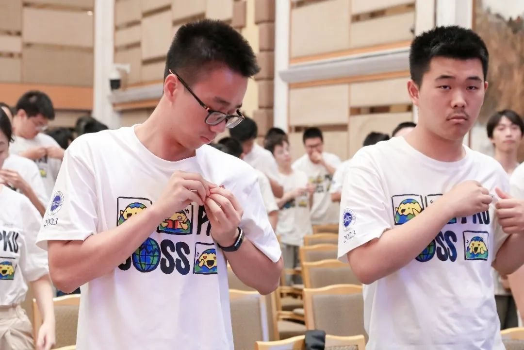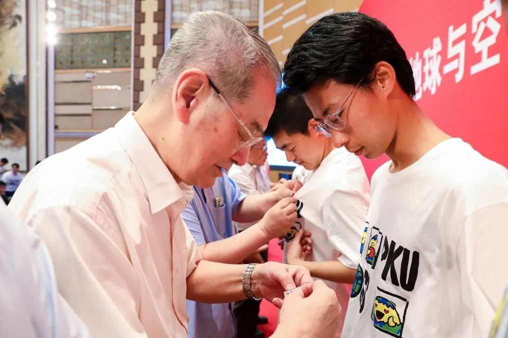 “一旦佩上北大校徽,每个人顿时便有被选择的庄严感。”与会的领导和老师们上台为新生代表佩戴北大校徽并合影,其余新生则在台下郑重地为自己佩戴上校徽。环节庄严且有仪式感,这枚校徽不仅仅代表着“北大人”的身份,也承载着地空“脚踏实地、仰望星空”的精神,承载着师长的嘱托和厚望、地空人的使命和荣光。从这一刻起,我们将共有北大地空人的身份,共享北大地空人的荣耀,共担北大地空人的责任!