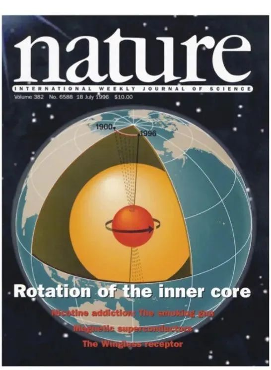 1996年Nature杂志的封面文章,在美国哥伦比亚大学的宋晓东和Paul Richards首次观测到地球内核差速旋转的证据。被美国Science杂志评为当年十大科学突破之一。