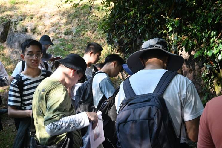 从半山腰处继续出发,在去往山顶的路途中,同学们观察到了三叠纪其他几个组的岩性特征。它们从下至上依次为以厚层灰岩白云岩为主的Angolo Formation、以颜色较深层厚较薄灰岩为特征的Prezzo Formation,以及主要由含黑色燧石条带灰岩组成的Buchenstein Formation。在老师的指点下,同学们对岩性的变化进行了观察与总结,得出了此处地层随时间演化沉积水深逐渐加深的结论。