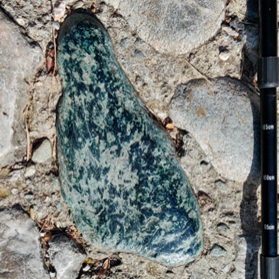 所谓“常看常新”,地学中更是如此,虽然观察路线与前一天的实习路线有所重合,但同学们却在路途中仔细观察,寻找并发现新的有趣现象。登山途中,可以看到铺路的石头中有着绿色的蛇纹岩转石,或是深海红色软泥形成的红色硅质岩,不同时代的岩石各有特点,他们或是停留在原地,或是经过后期冰川作用被搬运到附近,最终成为村民们上山路上的垫脚石,共同汇聚在一起,铺成脚下的斑斓。(图2)