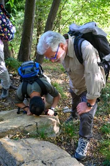 沿着崎岖山路继续前行,充满绿荫的小径将我们带到世外桃源,在这里我们看到几亿年前的自然作用与逾百年前的人类活动交叠在一起的奇特景象:在Molinata山谷,可以看到自十九世纪末至二战初期的采石场遗址,原料即来自于此处巨大的,约18000年前被冰川作用搬运而来的蛇纹岩漂砾。