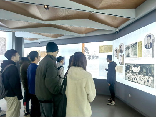 同学们认真倾听讲解员讲解校史