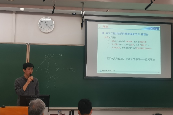曲少杰展示了中国航天科技集团各下属单位以及航天五院各部门的建设和发展历程,然后作题为“航天器工程与空间环境的关系”的报告,为同学们讲解现实中空间环境对航天器的影响因素和作用过程,并介绍相应领域的技术研究成果和工程应用成果。