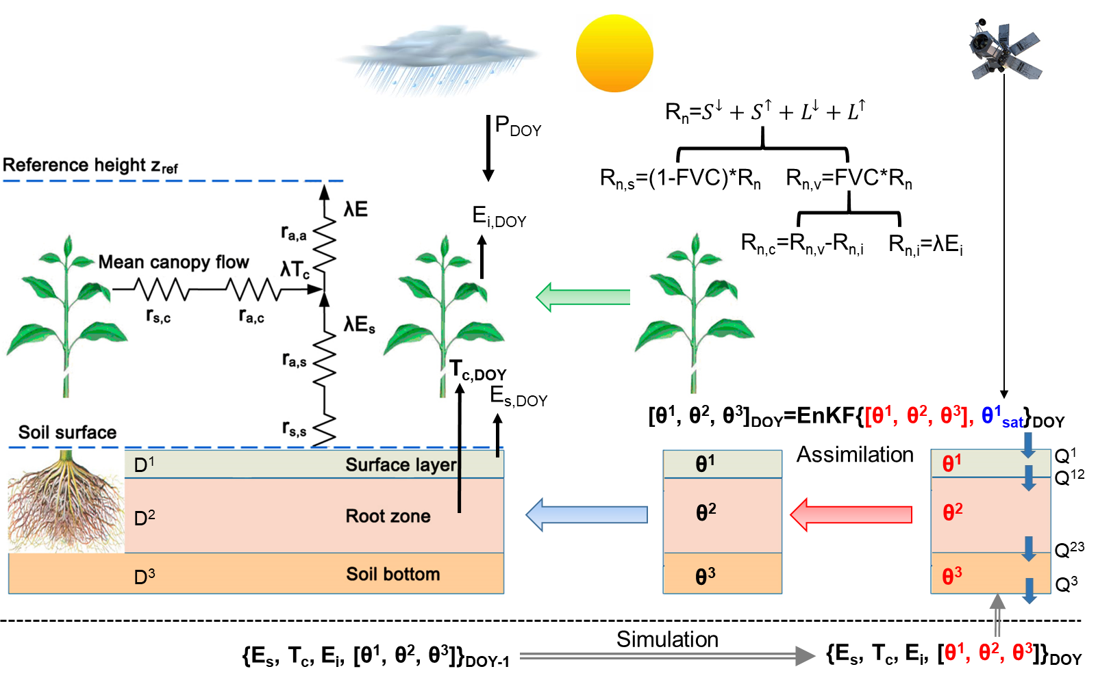 旱区蒸散发组分精细化遥感监测模型系统示意图(Yaokui Cui et al., JoH, 2021)