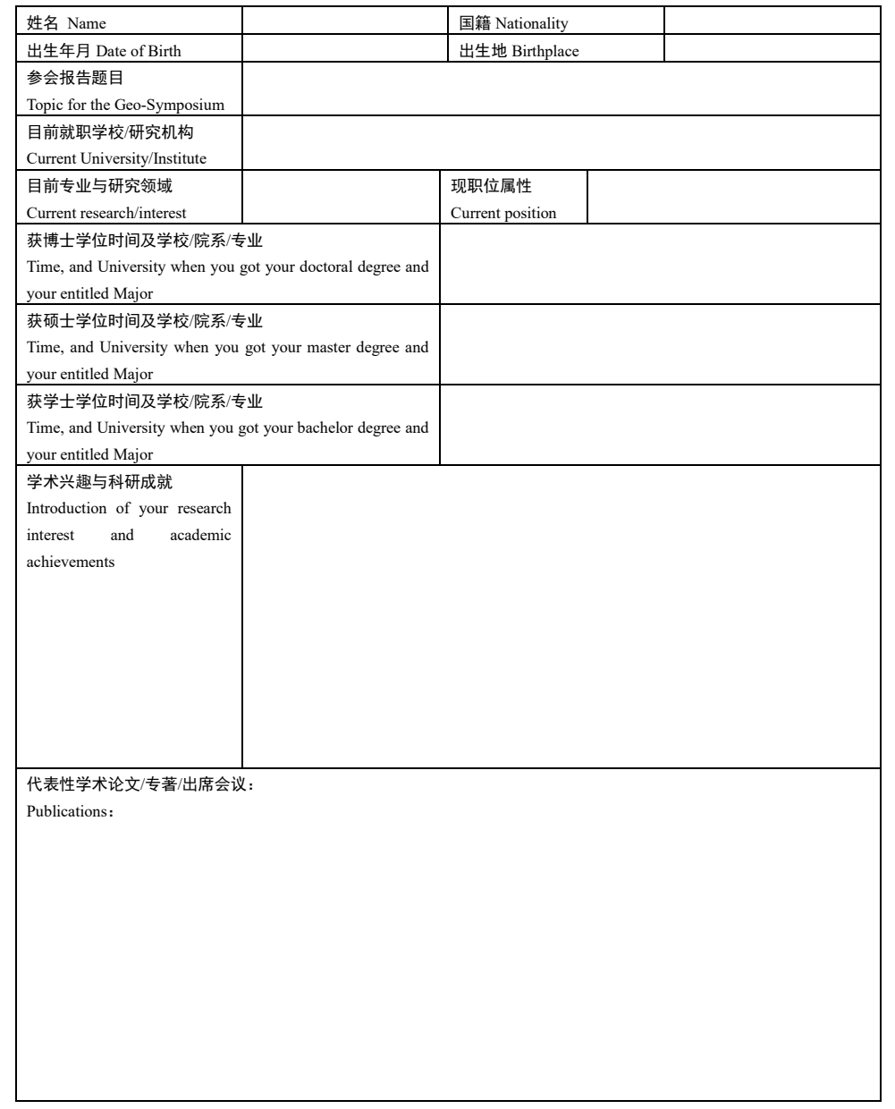 Application Form of The Fifth International Young Scholars Geo-Symposium