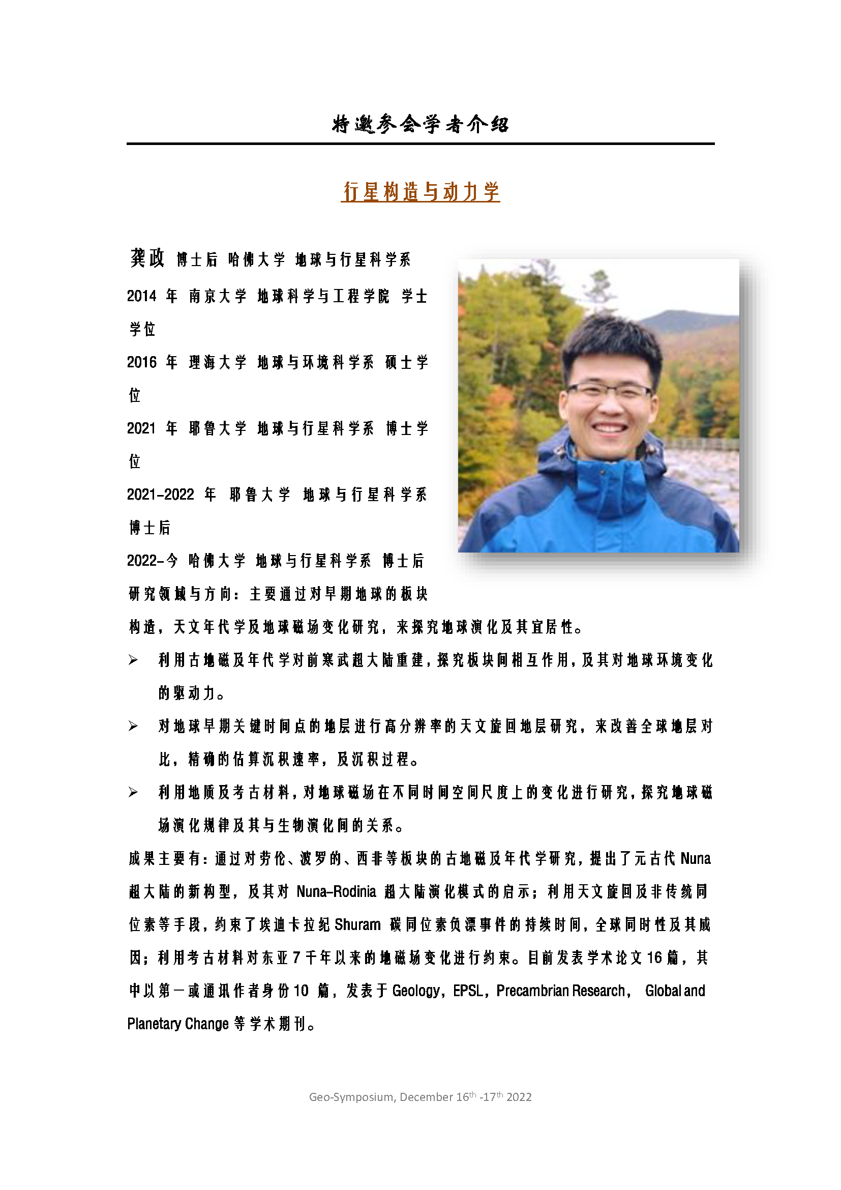 第六届国际青年学者地质学论坛会议手册