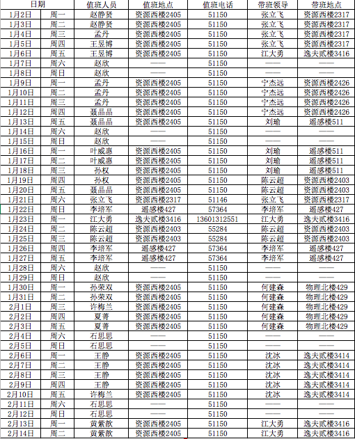 世俱杯中国官网入口2023年寒假行政人员带值班表