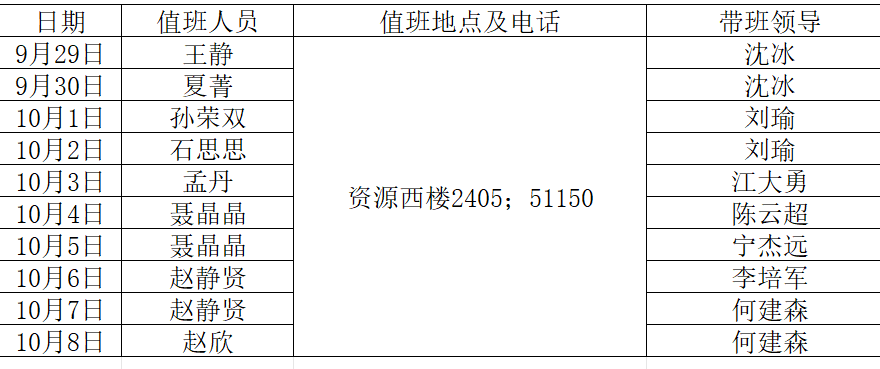 2023年中秋节、国庆节假期带值班表