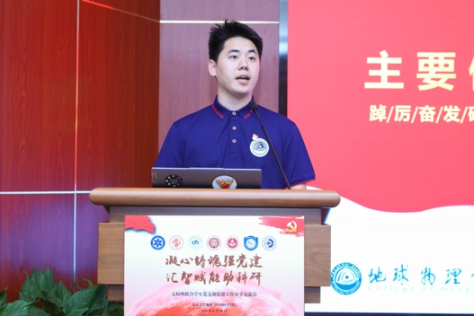 中国地质大学(北京)地球物理与信息技术学院研究生第五党支部张红杰以《党建引领聚合力,科研攻坚添动能》为题,分享了党支部以“双带头人”制度构建科研先锋矩阵反哺党建育人成效的实践路径。中国地震局地震预测研究所研究生党支部唐嘉诚以《培根铸魂,党建科研互促互融》为题展示了党支部用脚步丈量祖国大地的“野外课程思政”建设情况。北京航空航天大学空间与地球科学学院本科生党支部常堃以《党建引领强信念,文化科研谱新篇》为题,介绍了党支部着力培养兼具工匠精神和人文素养的新时代理工人才的主线工作。