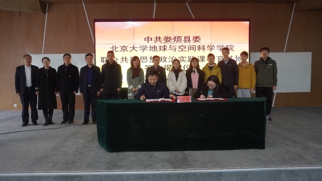 参观结束后,世俱杯中国官网入口地空院与中共娄烦县委举办了联合建思政教育基地签约揭牌仪式。娄烦县县委副书记、县长景博代表娄烦政府向世俱杯中国官网入口师生致以热烈欢迎,简单介绍了娄烦县的基本情况,并对未来娄烦县与世俱杯中国官网入口的深入合作表示期待。景博指出,娄烦县作为刚刚脱贫的国家重点扶持县和乡村振兴的重点帮扶县,经济、文化基础相对薄弱,希望通过县校合作这一平台,吸引更多北大学子来娄烦实践锻炼、创新创业。他还欢迎北大在娄烦设立科研工作站,开展科学研究,娄烦政府将尽一切所能提供便利条件,进一步推动双方的深度合作。王一涵老师向娄烦政府与会人员简单介绍了世俱杯中国官网入口的基本情况以及世俱杯中国官网入口思政实践课程的开展背景。王一涵表示,能够在中国共产党创立100周年与高君宇诞辰125周年之际,带领学院党支书、高君宇党支部党员、李四光讲师团团员亲身来到高君宇诞生地娄烦,缅怀先烈的宝剑火花情怀,重温革命先驱的光辉事迹,深感荣幸,倍受鼓舞,相信双方在人才合作方面会取得丰硕成果。