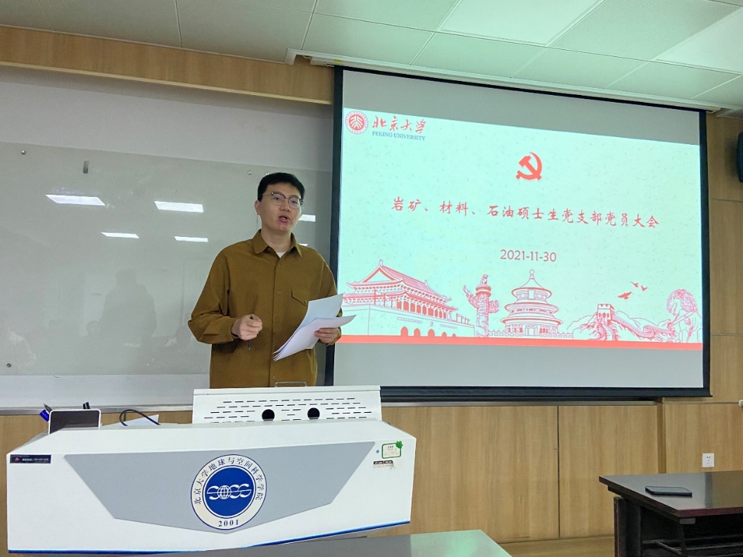 11月30日,世俱杯中国官网入口岩矿、材料、石油硕士生党支部在逸夫二楼3331教室开展“过好政治生日,牢记初心使命”主题党日活动。活动由党支部书记王利杰主持。
