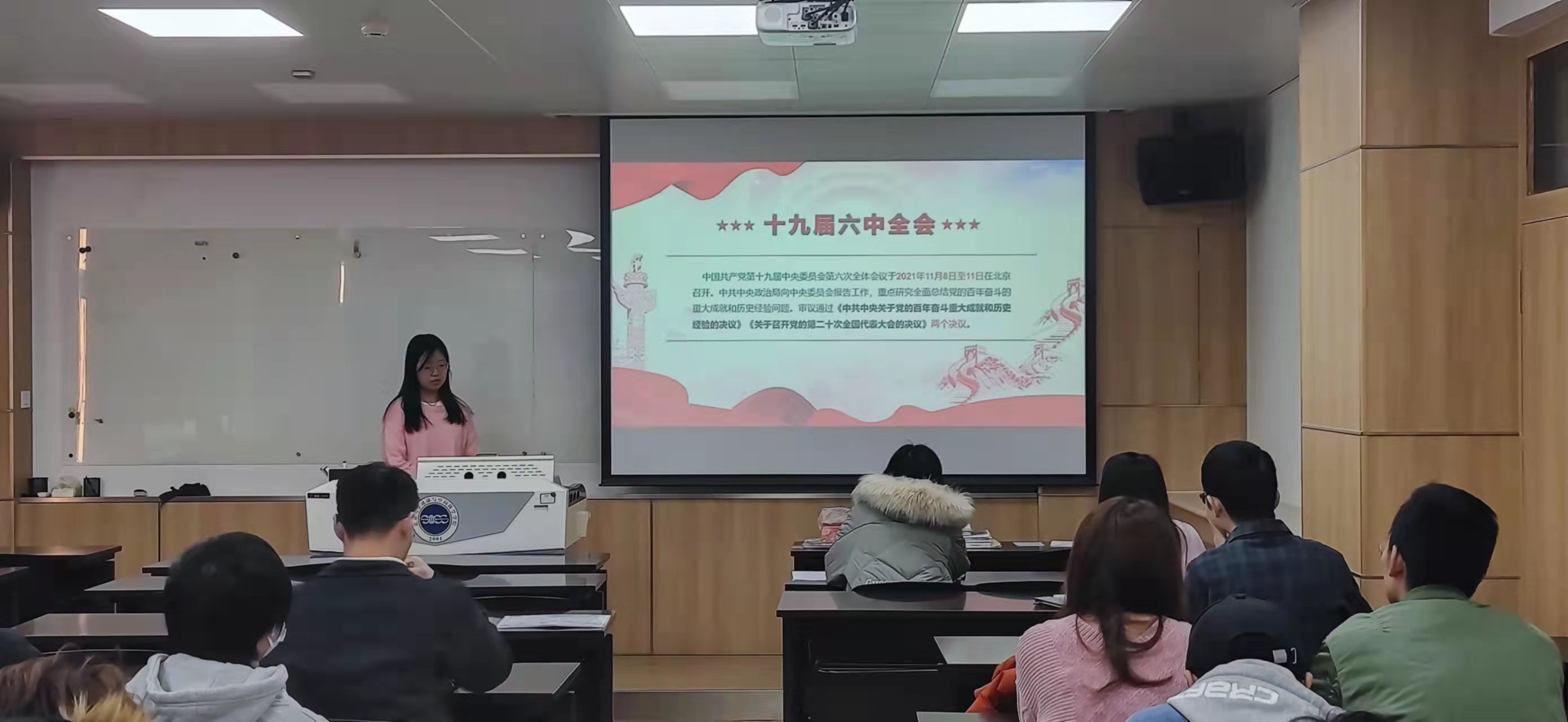 结合最新的时政,黄思民同学从十九届六中全会的召开、深海一号的交付、冬奥会、冬残奥会的举办、以及抗疫措施的四个例子来体现党和人民讲好中国故事的初心;王淑真介绍了十九届六中全会的主要内容。在党成立一百周年的重要历史时刻,党的十九届六中全会全面总结党的百年奋斗重大成就和历史经验,对推动全党统一思想、统一意志、统一行动,团结带领全国各族人民夺取新时代中国特色社会主义新的伟大胜利,具有重大现实意义和深远历史意义。