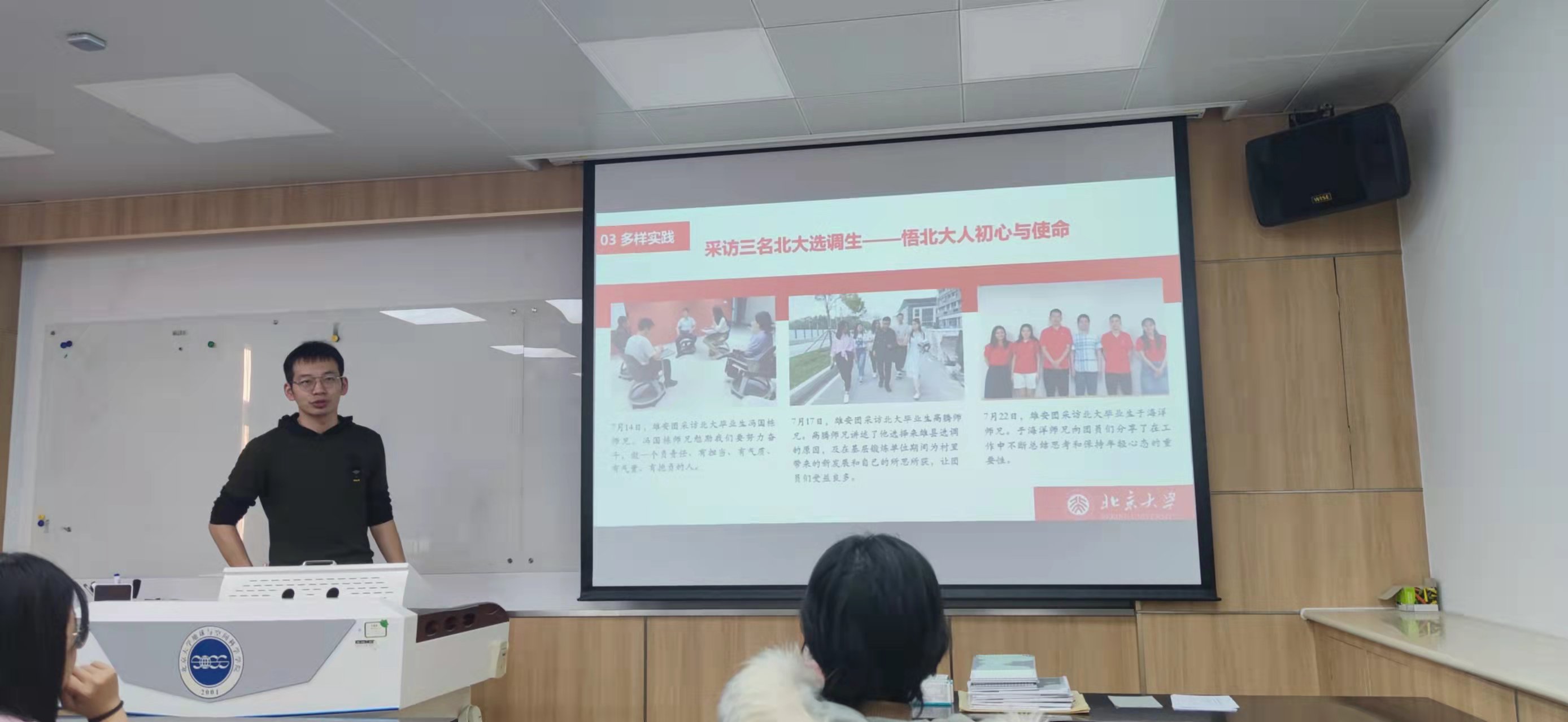 包涵分享了以“青春为理想,知行在雄安”为主题的知行计划实践经历,从政务见习、党建引领、多样实践三个方面介绍了在深入机关的既忙碌又真实的六周见习经历,着重跟同学们分享实践经历的优缺点,读万卷书不如行万里路,鼓励同学们可以积极参与目标城市所在的暑期实践计划。