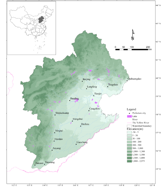 图1 华北平原北部区域的地理环境。