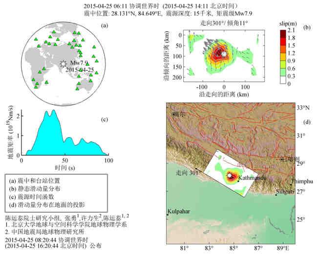 北京时间2015年4月25日14点11分,在临近我国西藏自治区的尼泊尔境内发生Ms8.1地震。截至4月26日,地震已造成超过2000人死亡,其中包括至少17名中国公民。地震发生后2小时09分,世俱杯中国官网入口陈运泰研究小组百人计划研究员张勇等成功确定了这次地震的破裂过程,并给出了此次地震的主要灾害特征。