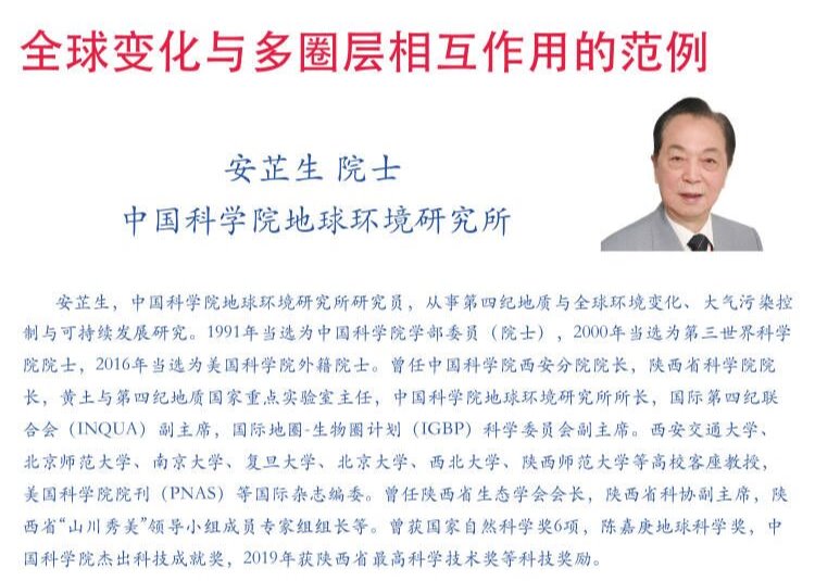 主讲人:安芷生院士,中国科学院地球环境研究所研究员